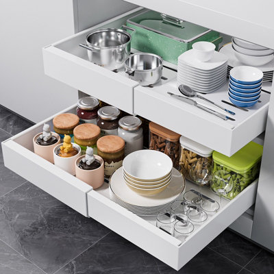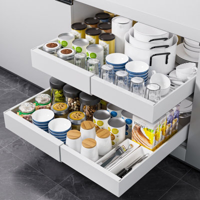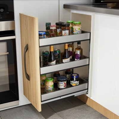 Cabinet storage helps you store and organise your kitchen items with ease and efficiency. Whether you’re in the market for pull-out drawers, carousels, a kitchen organiser, or soft close cabinet storage, look no further than B&Q to satisfy all your kitchen cabinet storage needs. Not only will the correct kitchen storage help reduce clutter on your countertops, but they’re also ideal for helping you to find items when you need them. Browse our range of kitchen cupboard storage at B&Q today, available in various types and sizes to suit any space and storage requirement.
