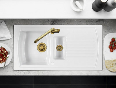 1.5 bowl sinks make washing up easier by giving you the flexibility of two working drains. They are ideal for multitasking as the smaller bowl can be used for washing or rinsing vegetables while the larger bowl can be used for soaking dishes. Our one and a half bowl sinks are available in a range of materials, styles and colours.